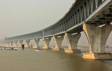 A Ponte sobre o Rio Padma é uma obra de proporções gigantescas. Trata-se de uma ponte rodoferroviária polivalente que encontra-se em fase final de construção em Bangladesh. Quando concluída, será a maior ponte de Bangladesh e a primeira travessia fixa do rio para tráfego rodoviário. Ele conectará Louhajong, Munshiganj a Shariatpur e Madaripur, ligando o sudoeste do país às regiões norte e leste. São 12Km de Ponte.
