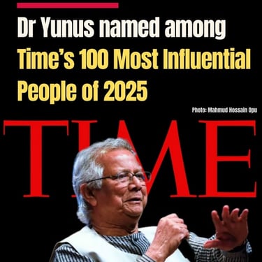 O Prêmio Nobel de Bangladesh, atual Conselheiro Chefe do Governo Interino, Professor Dr. Muhammad Yunus, foi relacionado pela prestigiada revista Time Magazine como uma das pessoas mais influentes do mundo em 2025.
