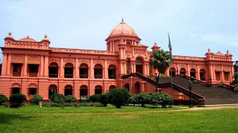 Dentre os pontos turísticos de destaque em Bangladesh, encontra-se o Palácio Ahsan Manzil, localizado na Capital Dhaka.